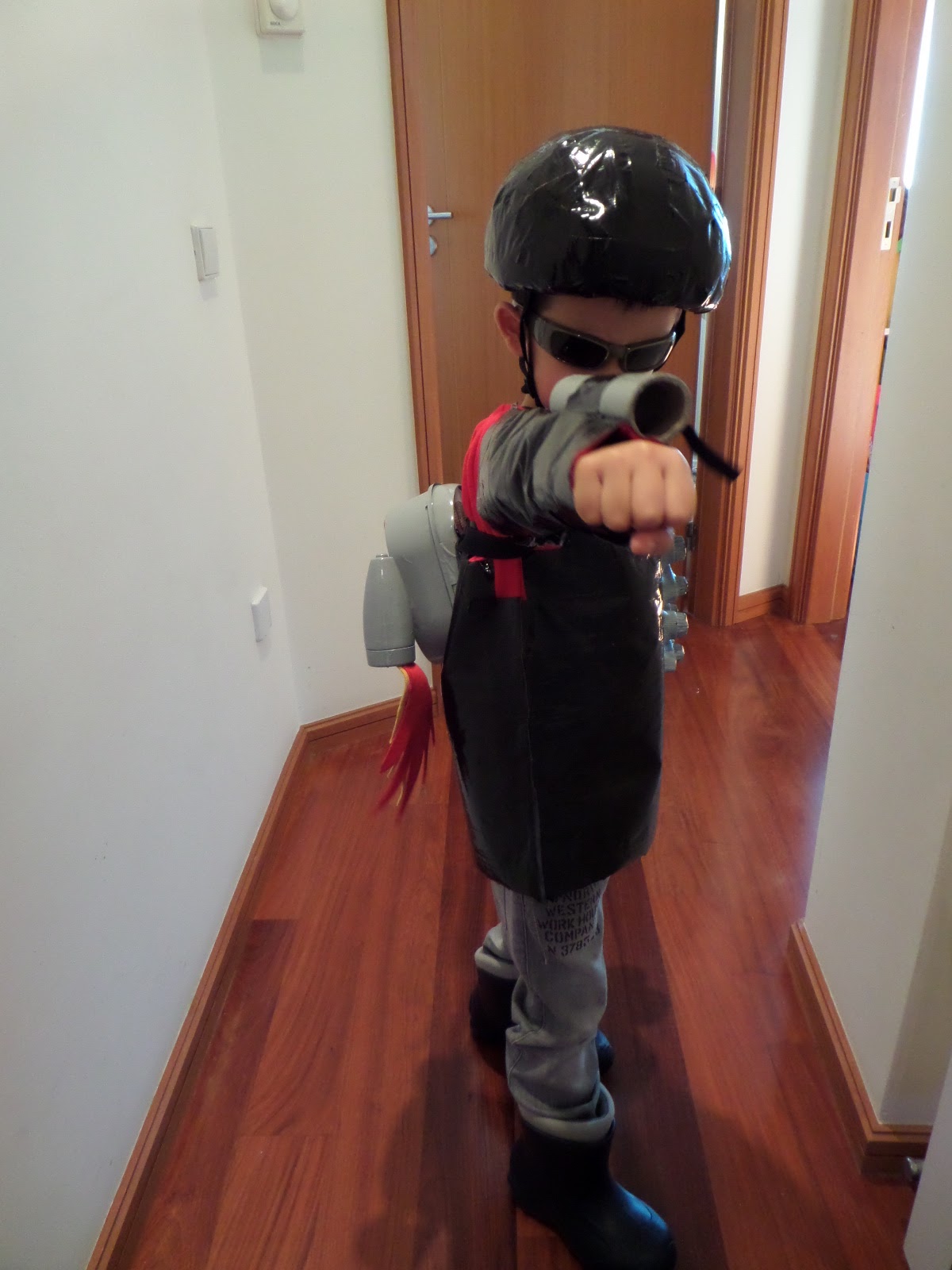 A ideia era ter feito alguma coisa também nas calças e pôr as galochas pretas, mas... Oh inglória, acabou-se-nos a fita adesiva!